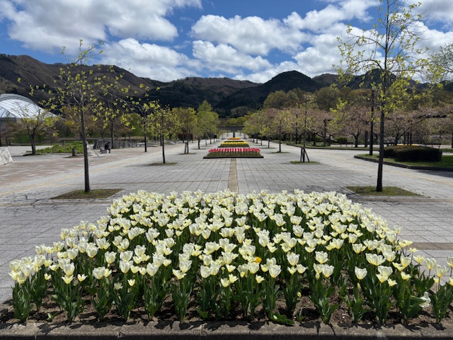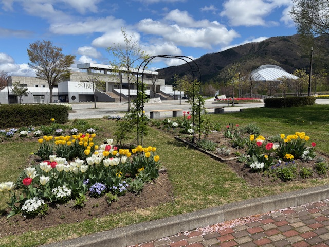 現在、会津総合運動公園ではチューリップが見頃を迎えております。