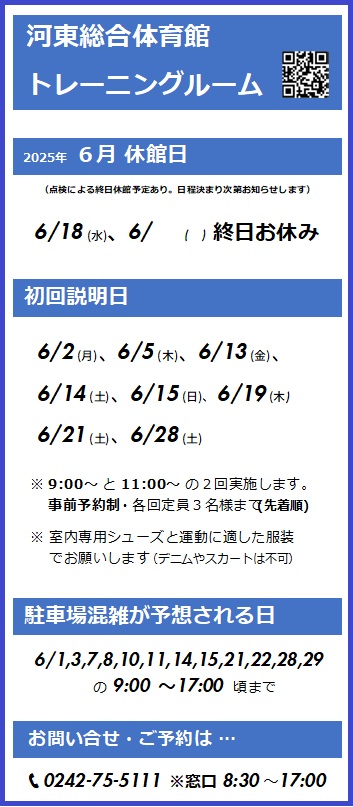 河東総合体育館トレーニングルームの初回利用説明について(令和7年6月分)