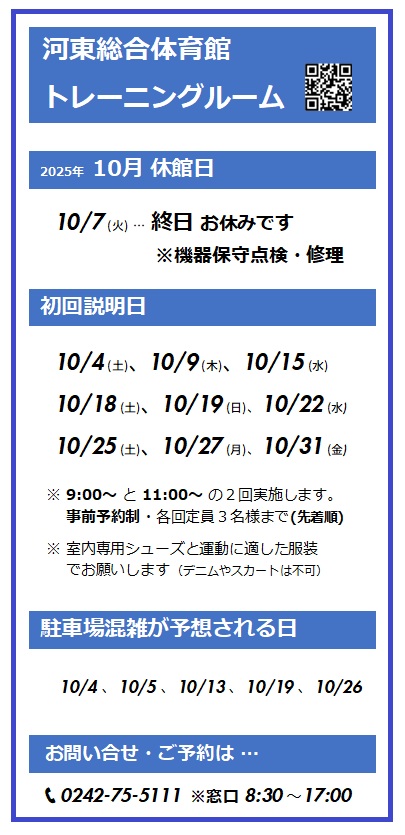 河東総合体育館トレーニングルームの初回利用説明について(令和7年10月分)