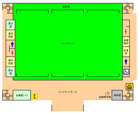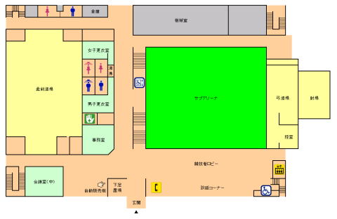 あいづ総合体育館 2024年9月13日 2025年3月7日 施設概要 住所 会津若松市門田町大字御山字村上164 TEL 0242-28-4440 FAX 0242-28-4443 設備 ・メインアリーナ2,016平方メートル(バスケットコート3面) 観客席 固定1,048席、移動1,008席・サブアリーナ750平方メートル (バスケットコート1面、バレーコート2面、バドミントン3面、卓球8面)・柔道場1面(128畳)・剣道場1面(304.5平方メートル)・弓道場 近的12人用 利用料金 メインアリーナ サブアリーナ 柔剣道場 周辺地図 パンフレット