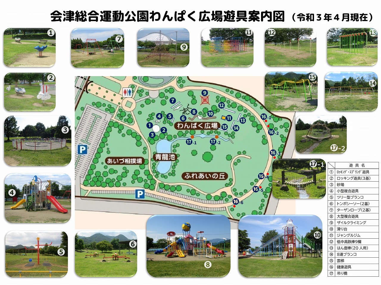 わんぱく広場 2024年9月17日 2024年11月8日 施設概要 住所 会津若松市門田町大字御山字村上地内 TEL 0242-28-4440 FAX 0242-28-4443 無料施設 周辺地図 パンフレット